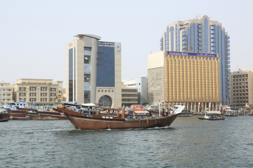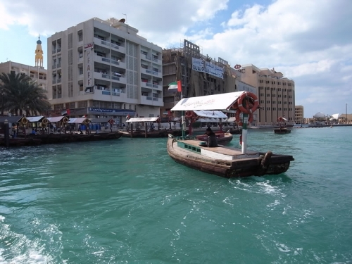 ドバイはペルシャ湾(ドバイではアラビア湾と呼んでいます)につながる入り江「ドバイ・クリーク」を中心にして発展してきており、その入り江の両岸が旧市街と呼ばれています。ドバイ・クリークの西岸「バール・ドバイ地区」にある歴史的建築物を保存した地域が「バスタキア地区」です。両岸は「アブラ」と呼ばれる渡し船で結ばれています。乗船料はAED 1(約30円)、時刻表などはなく、船が満員になったら出発します。