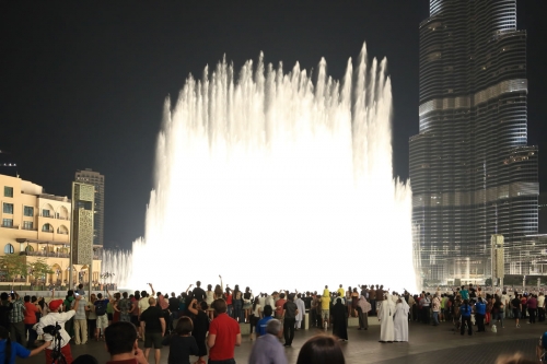 ドバイモール、ブルジュ・ハリファ、スーク・アル・バハールを囲むように大きな人工の池があり、そこでは毎夜「ドバイ・ファウンテン」という噴水ショーが開催されます。もちろん無料で観覧することができ、観光客に大人気です。噴水は最大で150m、なんとビルの約50階建の高さにまで放たれます。ラスベガスの「ベラージオの噴水」を作ったクリエイターが手掛けましたが、元祖を超える規模のショーとなっています。約6,000個の光を使った演出は幻想的でダイナミック。毎回音楽も変わり、何度見ても楽しむことができます。