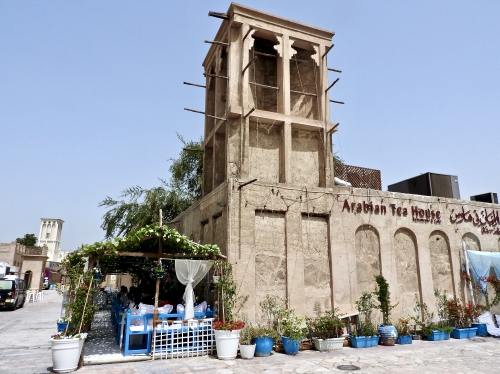 歴史的建造物を保存する遺産地区で、異国情緒あふれる素敵な街並みです。街歩きには暑いドバイですが、このエリアには古い民家を改築したオシャレなカフェやアトリエも並んでいるので、休憩しながらゆっくりまわるとよいでしょう。可愛らしい内装で観光客にも人気の''Arabian Tea House''では、すっきりした味わいのライムやミントを使ったジュースが人気。