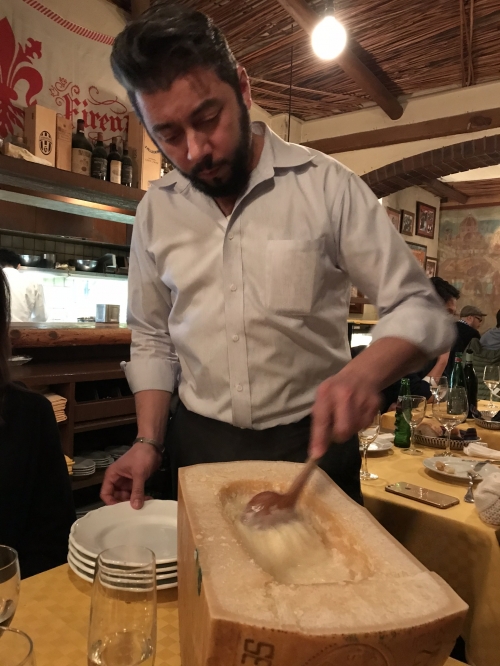 メインはパスタや肉、魚など種類がとても豊富で悩んでしまいます。誰もがオーダーするのが、大きなパルミジャーノの器の中で、リゾットを目の前で混ぜてくれるパフォーマンスがついた、パルミジャーノのリゾット(¥1,800)。シンプルなのに奥深く、チーズ好きから絶大な人気。