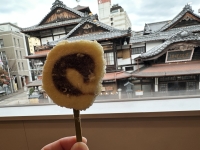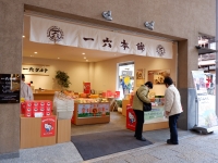 写真:旅田サトシ 道後ハイカラ通り |  写真:旅田サトシ 一六本舗 道後本館前店 |  写真:旅田サトシ 一六タルトの天ぷら(税込200円) |