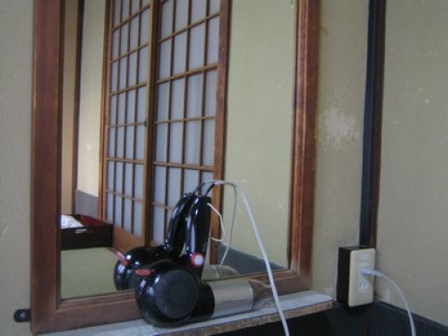 鏡台や無料のドライヤーもありますので、入浴後にお部屋でゆっくり髪を乾かしたり、お化粧直しができるのも魅力です。各部屋に風情のあるベランダも付いているので、湯上りに涼みながら温泉街を眺められて最高ですよ。