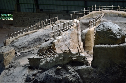 この村は、西暦590年頃に噴火した 近隣の火山ロマ・カルデラにより、わずか数時間のうちに4~8mの高さですっぽりと埋もれたようです。住民は、噴火前に差し迫った危険性を察知したのか慌ただしく避難したようで、巻き込まれた遺骸などは見つかっていませんが(2018年にここで初めて人骨が発見されましたが、噴火で死亡したわけではないと説明)、日用道具類、陶磁器類、家具、子供のおもちゃ、食べかけの食事までもが残されていたそうです。