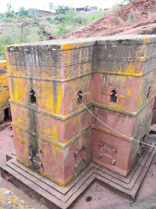 ラリベラの教会は、地上に建物を建設するのではなく、岩山を上から垂直に下へと刳り貫いて造られています。岩山の上に建物を建設するのではなく、岩山をくり抜こうと考えた点に俄然興味が湧きます。起伏の激しい岩山の上に建てるより、岩山を刳り貫いた方が効率的という判断だったのか、周辺に適当な資材がなかったのかはよく分かっていませんが、その建築技術は非常に高度なものです。
