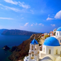 世界で最も古い都市のひとつ首都アテネで訪れたいのは、世界遺産に登録されているアクロポリス。中央に建つパルテノン神殿をはじめ数々の遺跡を見ることができます。アテネから170kmほどの場所にはデルフィ遺跡があり、アポロン神殿が有名。そこからさらに北にあるカラバンカには、奇岩群とその上に建つ修道院群メテオラがあり、どちらも世界遺産となっています。エーゲ海の島々はリゾート地として人気で、とくにお洒落なミコノス島と、断崖絶壁に白壁の建物が建つサントリーニ島が人気です。