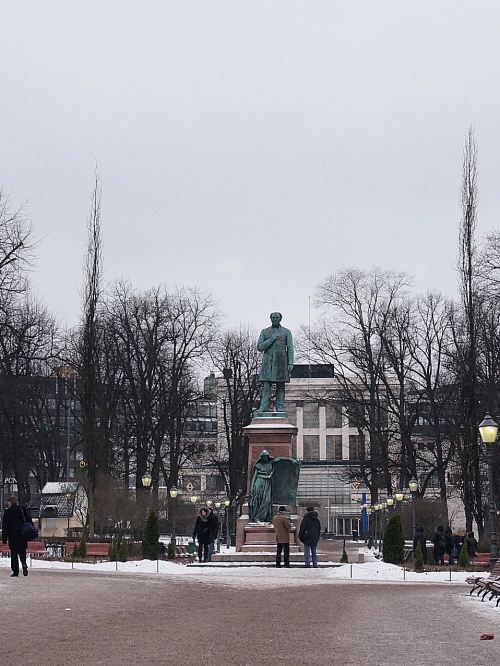 ヘルシンキ大聖堂の前に広がるのが「元老院広場」。石畳の真ん中には、かつてフィンランドを統治していたロシアの皇帝、アレクサンダー二世の像が設置されています。夏場にはこの広場でコンサートやイベントが開催されたり、屋台が出ていたりして、市民や観光客を楽しませています。