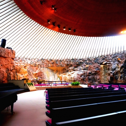 テンペリアウキオ教会は通称・石の教会とも呼ばれており、その名の通り、岩をくりぬいて出来た世界的にも珍しい教会です!中には立派なパイプオルガンがあり、その音色が岩に反響してとてもキレイに聞こえるんですよ。そんなに広くない教会ですが、天井がガラス張りで、高さもあるのでとても大きく見えるんです。こちらも一見の価値ありです。