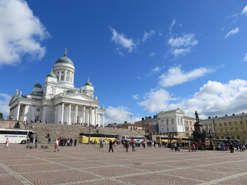 「ヘルシンキ中央駅(Helsinki Central Station)」から徒歩10分の場所にあるヘルシンキのランドマーク、ヘルシンキ大聖堂!入場は無料ですので、中に入って自由に見学してみましょう。ヘルシンキ大聖堂の前には元老院広場があり、石畳の真ん中には、かつてフィンランドを統治していたロシアの皇帝である、アレクサンダー二世の像が建っています。夏場には、この広場でコンサートやイベントが開催されたり、屋台が出ていたりして、市民や観光客を楽しませています。