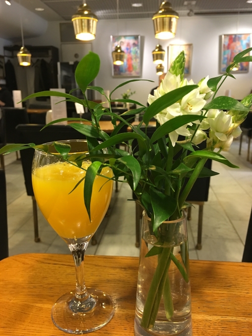 入り口を入って右のレストランエリアは、テーブルクロスのかかった落ち着いた空間です。前菜にはトナカイのタルタルステーキ(€18.9=約2,400円)、メインにはサーモングリルやトナカイ肉のフライ、アーティチョークリゾットなど、魚、肉、野菜等から選ぶことができます(€35程度〜=約4,500円〜)。