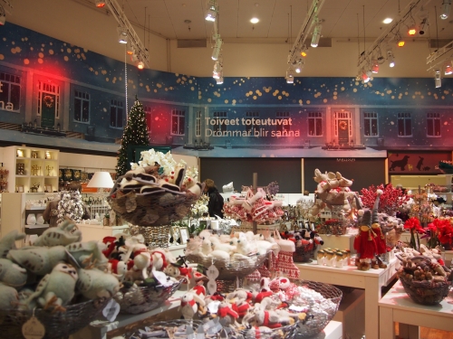 アカデミア書店を見学したら、その隣にあるストックマンへ!1862年創業の老舗デパートで、地下2階から8階まであり、北欧で最大の大きさを誇っています。もし、クリスマスの時期に訪れたらぜひ見てほしいのは、クリスマス商品のフロアです。さすがサンタクロースの国、フィンランド!その品揃えは圧巻です。否応無しにもテンションが上がってきます。