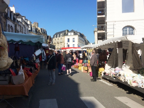 毎週月曜の午前中だけメリー[Mairie D'Auray]周辺の通りが歩行者天国になり、BIO(オーガニック)食品、アンティーク、古本、ハンドメイド雑貨など、様々な店舗が並びます。