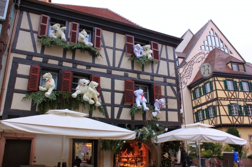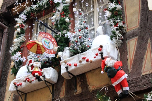 コルマールもストラスブールに負けないくらい街全体でマルシェ・ド・ノエルを盛り上げています。マルシェを覗くのも楽しいですが、やはり可愛く飾り付けられたクリスマスデコレーションは目を惹きます。それぞれが全く違う飾り付けで、同じものが二つとないのでついつい一軒ずつ写真に撮ってしまいます。
