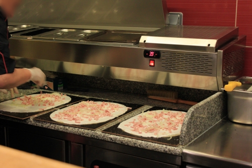 ブタの可愛らしいイラストが目印のLa Soï(ラ・ソワ)。プフィスタ邸すぐのタルトフランベ専門店です。1枚8ユーロ前後(1,040円程度)で食べられる気軽さも人気ですぐ満席に!開店直後の来店がお勧めです。