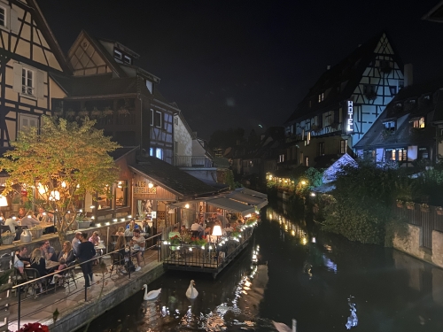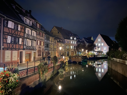 フランス東部のアルザス地方に位置する町で、小さな街ながらも伝統的な建物や見応えのある街並みが広がり、国内外からの観光客が訪れる可愛らしい街です。ドイツとの国境にも近いことや、歴史的背景からドイツ風の木組の家やドイツ料理に似たグルメなど、アルザス地方の魅力の詰まっています。また、昼と夜とではすこし違う雰囲気を持つ美しさもあります。