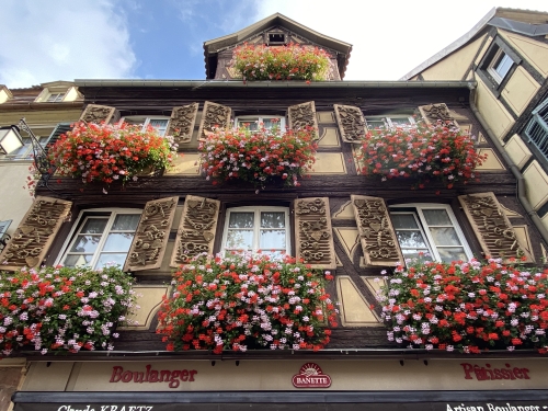 これらのほとんどが第二次世界大戦の戦禍を免れ、当時のまま残されている歴史ある貴重な建物です。特に目を引くのは、どこにでも花がきれいに飾られていること。その景色が、コルマール らしさをより演出しているように思います。
