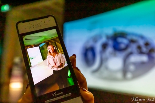 先程受け取ったスマートフォン・ガイドを赤丸の箇所にかざすと、その場その場で音声や映像が始まります。またパネルの映し出されたプロジェクションマッピングはインタラクティブなので、自分の手の動きによって自由自在に操作できるのがゲームのようで面白いです。