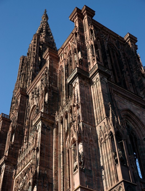 ストラスブールの一番の名所、ストラスブール大聖堂は絶対に外せません。市内の至る所からタワーが見え、近づくほどにファサード(建物正面)の造りの細かさが確認でき、胸が高鳴ります。