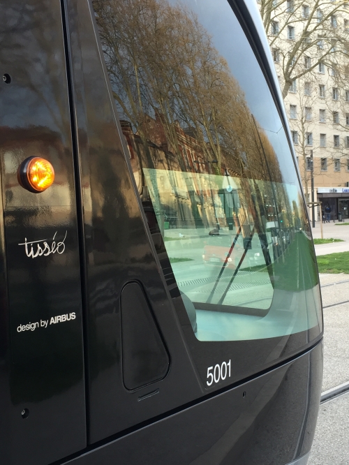 このトラム、デザインはエアバス社が担当。車体にもdesigned by Airbusという文字が!