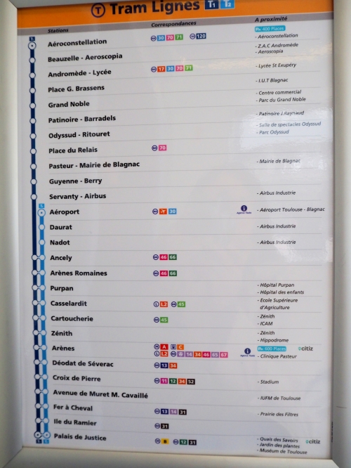 トゥールーズに空路で到着するなら、早速トラムを使って市内まで行くのがオススメです。空港出口を出ればトラム乗り場まで看板がしっかり出ていて乗り場を逃すこともありません。