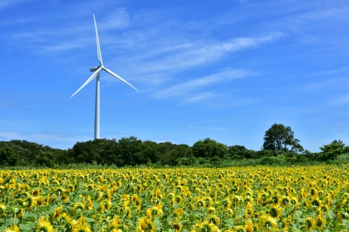 また、夏には公園近くに約4万5000本のヒマワ畑が出現し、ヒマワリと風車のコラボレーションが楽しめます。