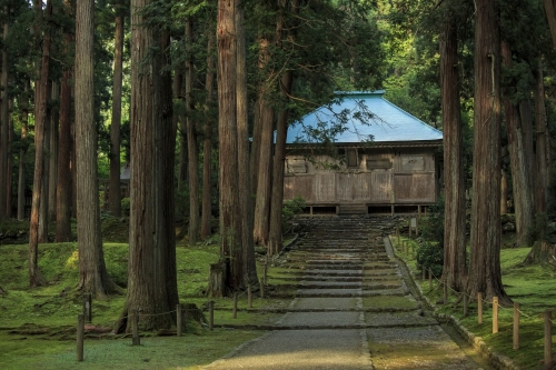 寛元2年(1244年)に道元禅師によって開かれた曹洞宗の大本山。現在もつねに200名ほどが修行生活に励んでおり、魂を浄化してくれるパワースポットとも言われます。33万平方メートルにもおよぶ広大な敷地内には、山門・仏殿・法堂・僧堂・大庫院・浴室・東司など修行の中心となる七堂伽藍をはじめ、70余りの建物がたたずみます。見どころのひとつが、拝観ルートになっている傘松閣(さんしょうかく)2階の「絵天井」。230枚もの美しい絵が天井一面描かれており、うっとり眺めたくなります。