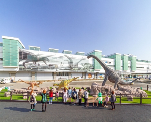 さすが恐竜王国!駅前がジュラシックパークのよう