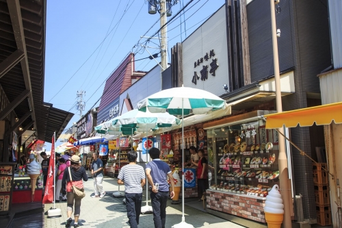 東尋坊の崖の前まで約300mにわたって続く商店街