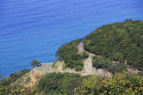 ゆるやかな低山に囲まれた、若狭湾沿いの5つの湖「三方五湖」を望みながらドライブが楽しめる、総延長11.24kmの観光道路。