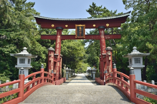 正保2年(1645年)に造られた入り口の鳥居は高さ約11mもある大鳥居で、明治34年(1901年)に国の重要文化財に指定。奈良の春日大社・広島の厳島神社の大鳥居とともに「日本三大鳥居」にも数えられています。