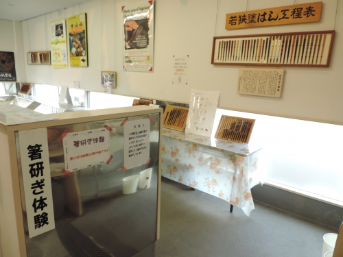 小浜の箸の専門店「箸匠せいわ」や「箸のふるさと館WAKASA」では、良質の小浜塗箸の購入や、オリジナルのお箸作り体験「研磨体験」などが楽しめます。