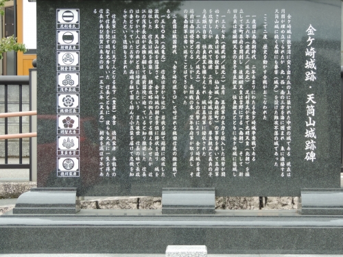 敦賀湾に突き出た丘の上にあったお城で、現在は城跡の石碑があるのみです。1336年には足利尊氏の入京によって北陸へと落ち延びた新田義貞が入城し、幕府軍との戦いの舞台となった他、戦国時代には織田信長が浅井・朝倉の軍勢に挟み撃ちとなり、撤退を余儀なくされ、後に「金ケ崎の退き口」と呼ばれる撤退戦の舞台となるなど、歴史に大きくかかわったお城でもあります。