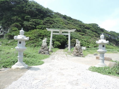 島には本殿、拝殿ともに県の重要文化財となっている大湊神社があり、多くの人々が日本海に架かる朱色の橋を渡り参拝に訪れます。