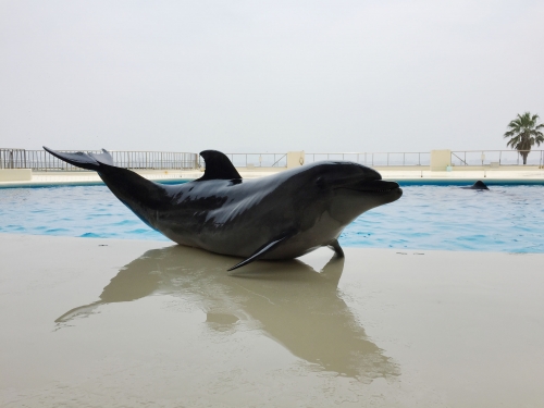 こちらはショー終了後、ステージでポージングしてくれるイルカを写しました。