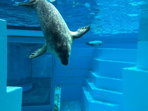 水中3方向に設置された覗き窓や、屋外の海面など、様々な角度からアシカプールは楽しめます。
