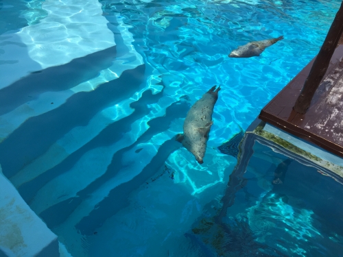 アシカの水槽はリニューアル後、以前より開放的な空間となっていて、アシカをもっともっと身近に至近距離で観察できる工夫が施されています。