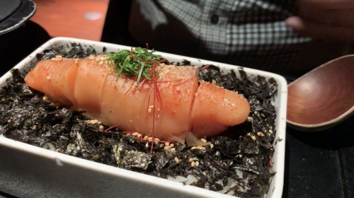 一目みて、本場の明太子ってこんなに大きいの?と驚きます。スーパーで買う明太子とは全然違う大きさ、そしてふっくら感。眺めているだけで幸せな気持ちになります。明太子に昆布が巻いてあるのも面白いです。ちなみに専用のタレもあります。そのまま食べてももちろん美味しいですが、タレをかけて食べてもこれまた格別。福岡で美味しい明太子を食べたいなら、めんたい重がオススメです!