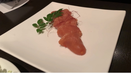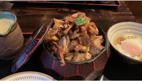 ご飯の上にカリカリの鶏皮、炭火で焼かれた香ばしい鶏モモが乗せてあります。ご飯と一緒に食べるのももちろん美味しいですが、特製の出汁を使ってのお茶漬けが最高でした。薬味や、特製ゆず胡椒などテーブルに何種類も置いてあり、最後まで飽きることなく食べられます。本当にオススメのお店ですので、ぜひ予約をして行ってみてくださいね。
