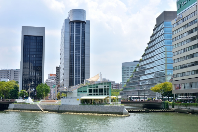 園内にあるベンチからは那珂川をはじめ、複合型商業施設「キャナルシティ博多」、そして中洲の眺望を楽しむことができ、ちょっとした暇つぶしにはぴったりな場所です。