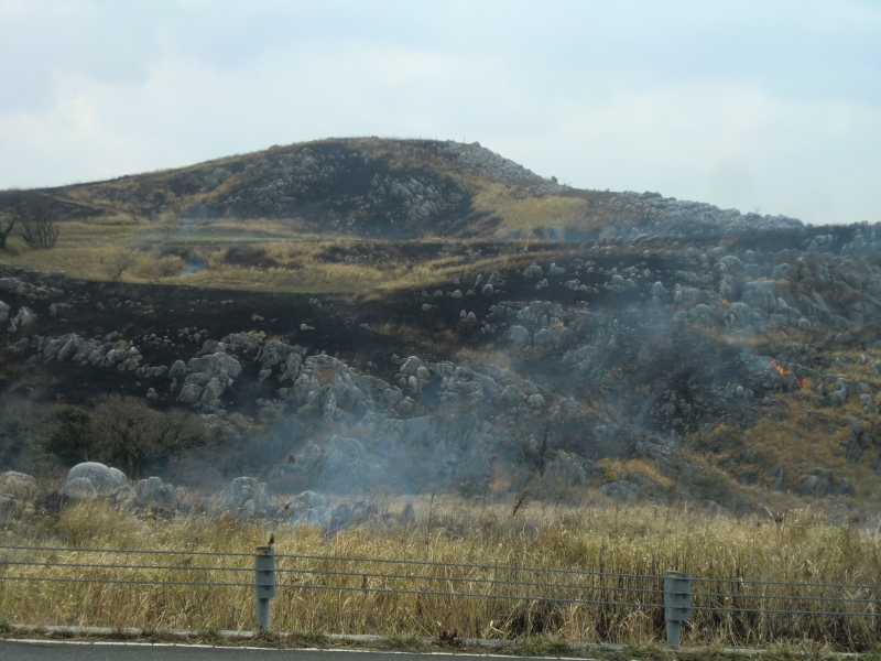 2月下旬から3月上旬頃、平尾台の春を告げるのが、野焼きです。(野焼きのときは、通行止めや迂回路があるので、注意しましょう。)