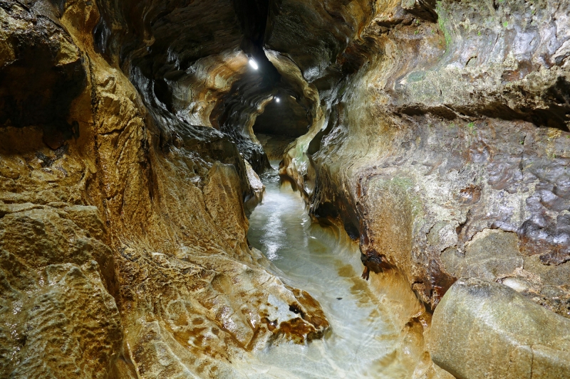最初は靴でも歩けますが、480mから先は、水の中を歩いて行きます。ちょっとした探検気分!水は、深いところでは大人のひざ下くらいまであります。無料の貸しサンダルもありますが、サンダルを持参しても良いでしょう。