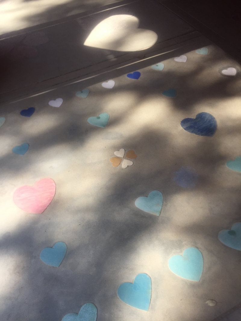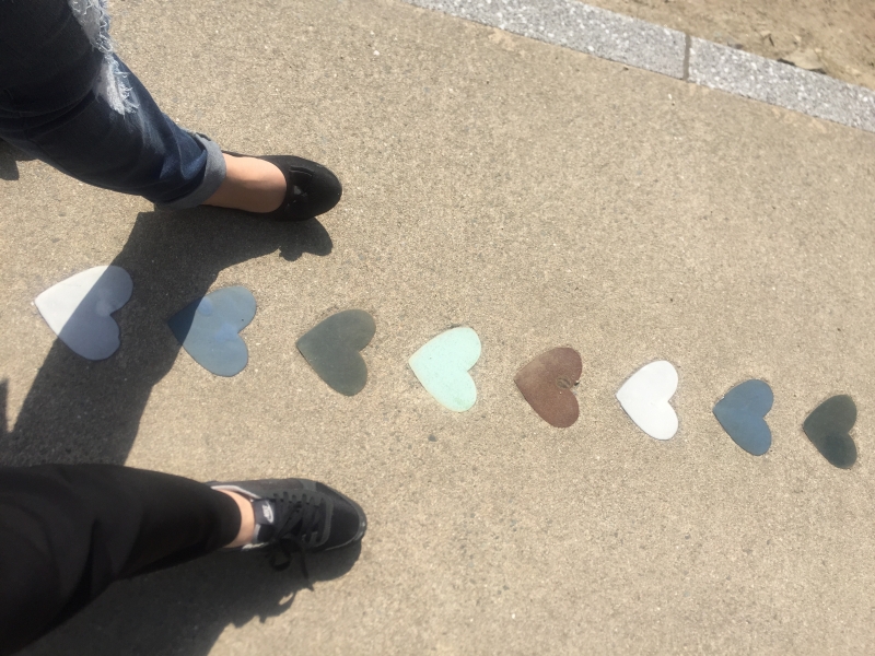 まずは「水田天満宮」を参拝してから、その横にある「恋参道」へ。この道はハートの陶板が埋め込まれていて、荘厳な神社から一気におとぎの世界へ入り込んだような気分になります。
