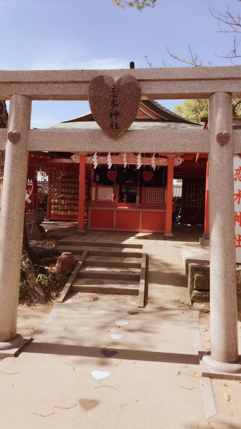 短い参道をぬけると「恋木神社(こいのきじんじゃ)」に到着です。あふれるほどの愛に恵まれますように…という願いの込められたこの鳥居には、ハートが10個散りばめられているそうです。ぜひご自身で探してみてくださいね!