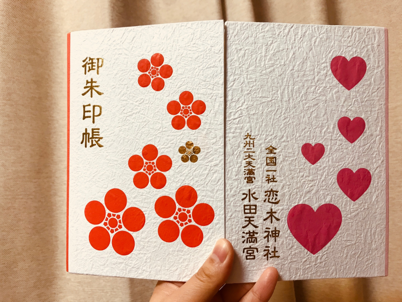 御朱印帳にももちろんハートがついてます。写真には写っていませんがビニールのカバーがついているので、汚れる心配もありません。御朱印集めをこれから始めたいという方にも恋木神社の御朱印帳はおすすめです。
