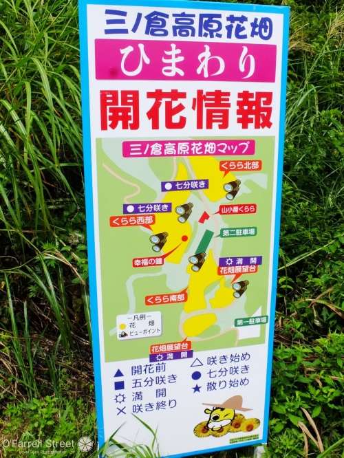三ノ倉高原のひまわり畑は、冬場はスキー場という広大さを活かし、花畑を大きく4エリアに分けています。場所と例年の開花状況、近い駐車場を、記載しておきますので、参考にしてください。