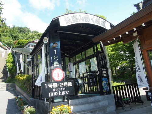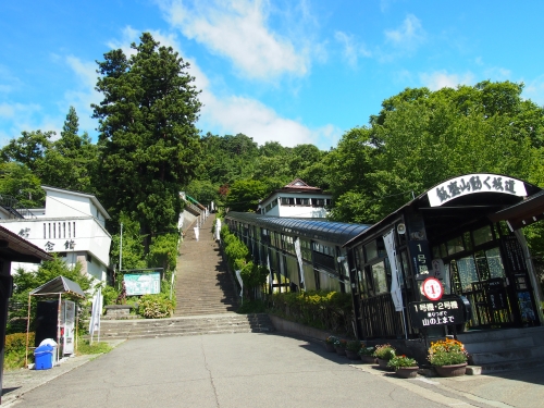 まずは長い階段の上り飯盛山へ。体力に自信のない方は、スロープコンベア(有料)もあるのでご安心ください。