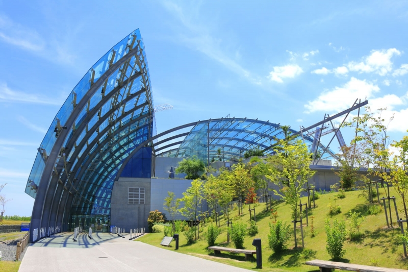 見どころのひとつである大水槽「潮目の海」は、黒潮と親潮が出会う「潮目」を三角トンネルの2つの水槽で表現。そのほか屋外にある世界最大級のタッチプール「蛇の目ビーチ」では、裸足で、ナマコやヒトデなど多くの生き物と触れ合うことができます。