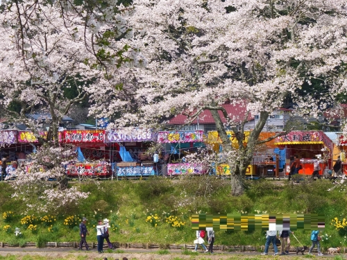 お天気ならば、桜の開花期間には、100匹の鯉のぼりが、大空を悠々と泳ぐかもしれません。露店の出店もあるので、美味しそうな香りにも、そわそわしてしまいますね。