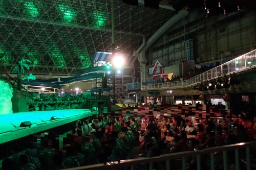 フラガールのショーは、昼と夜、演目を変えて開催されますが、是非ご覧頂きたいのが夜のポリネシアン・グランドステージ。