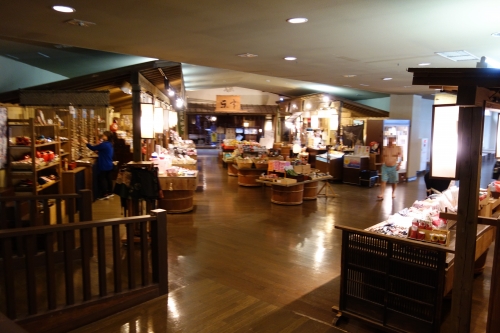 江戸情話与市前には、館内では唯一の、和風雑貨から駄菓子まで揃うお土産処が設置されており、太鼓や笛の音を聞きながら、夜店めぐりの気分を味わえます。