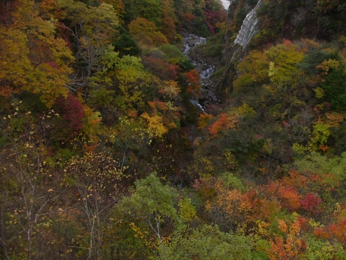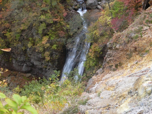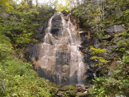 ゴールドラインのビュースポットの一つです。名前の通り岩肌を滑り落ちるように流れる滝で、春の新緑や秋の紅葉など周りの景色も楽しめる滝です。